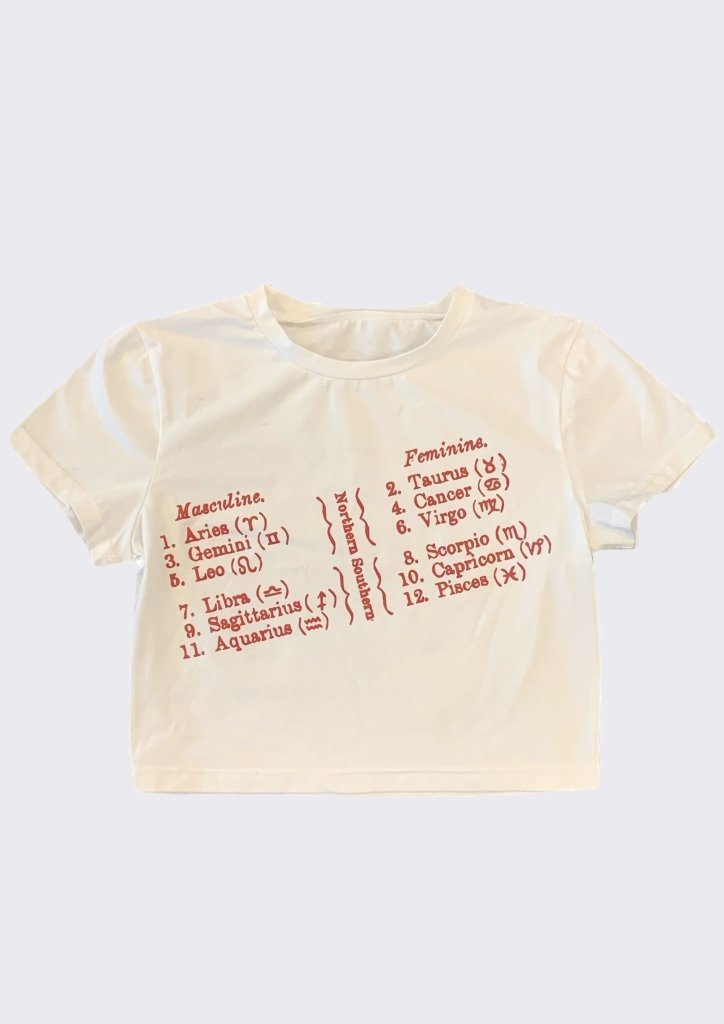 Show the haters that astrology IS real with this cute white Baby Tee!